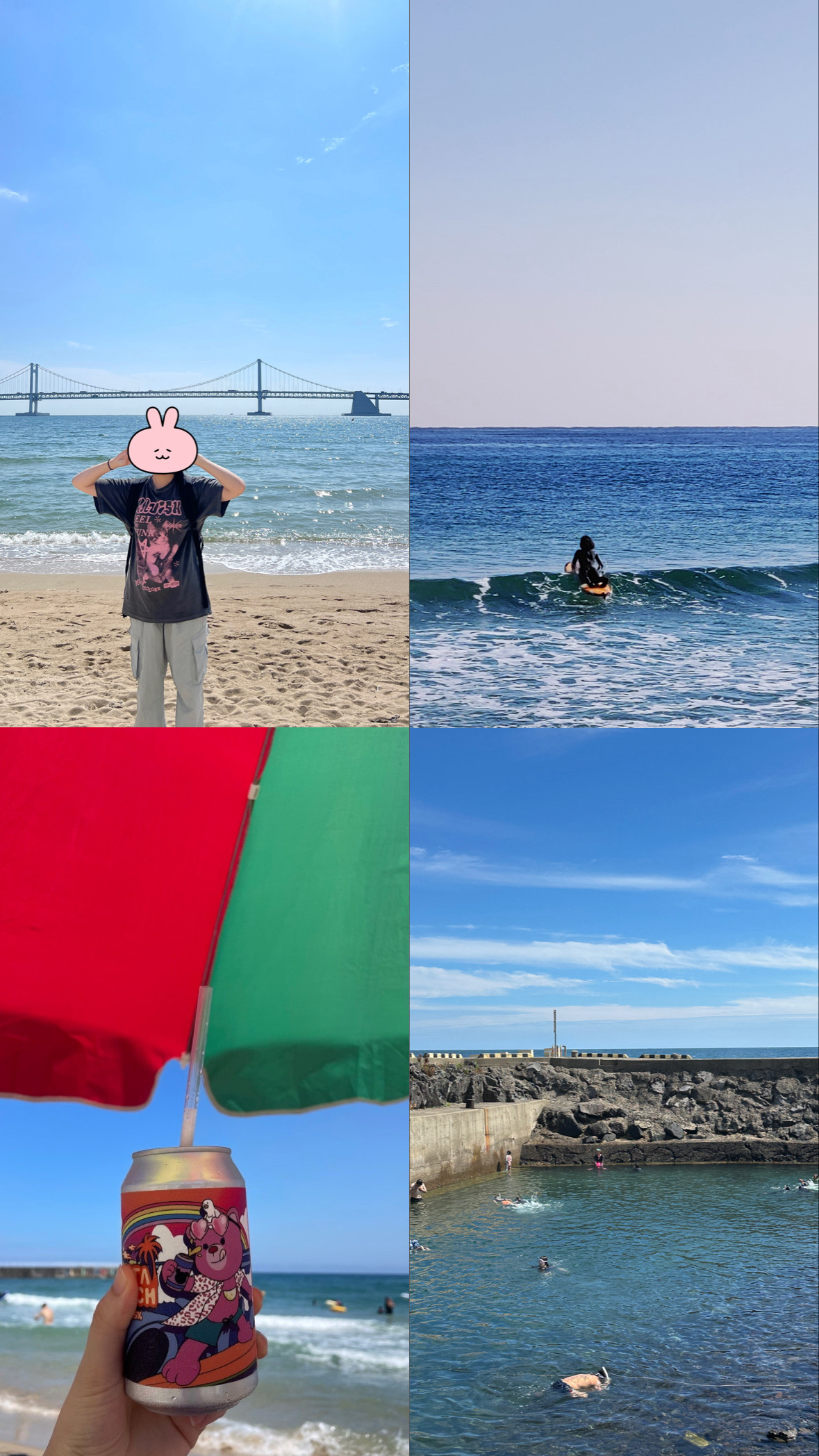 정작 그렇게 어렵게 빌린 튜브를 가지고 바다에서 얼마큼 놀았는지는 기억이 잘 나지 않는다. 튜브를 가지러 왔다 갔다 한 사이 체력이 빠진 것도 빠진 거지만 간조 때가 되어 물이 얕아져 그냥 튜브를 배에 낀 채 바위에서 게를 잡고 놀았던 기억만 있다.